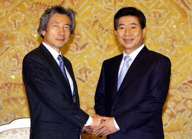 據(jù)共同社報道,盧武鉉在宣誓就任韓國總統(tǒng)后在青瓦臺總統(tǒng)府會見了小泉純一郎。