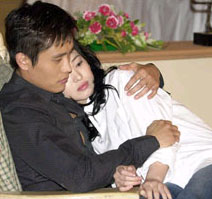 從26日凌晨5時(shí)起,兩人就開始排練。宋慧喬坐在李炳憲的膝蓋上表白“我愛你”,但她因過分投入,竟流了眼淚,由于劇本上沒有這種要求,暫停拍攝。李炳憲就像影片《亂世佳人》中的克拉克·蓋博一樣,舉起宋慧喬,挪到床上去,讓攝制組感到滿意。李炳憲先在躺在床上的宋慧喬的前額接吻后,又熱烈地接吻宋慧喬的嘴唇,成功地表演了床上接吻戲。