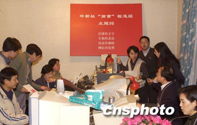報道組由一名副總編領(lǐng)隊,抽調(diào)總社各部門及七個分社的骨干記者四十余人采訪兩會。報道組由文字記者、攝影記者、網(wǎng)絡(luò)記者、影視記者和技術(shù)后勤人員組成。報道組秉承中新社短、快、活的風(fēng)格,提倡“活潑的文字、生動的畫面、快捷的網(wǎng)絡(luò)、團(tuán)結(jié)的集體”的精神。