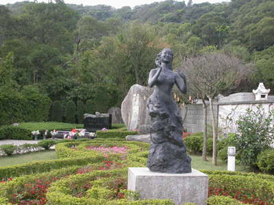 我們正要探個究竟,朋友很快就回來了,因為鄧麗君的墓在這里一問便知。朋友指著那件雕塑說,“這件作品肯定是朱銘的”。朱銘?朋友說,他是臺灣著名的雕塑家,擁有自己的私人美術館,且把美術館當作公園來經營,他的美術館在金寶山墓園的下面,占地很大。朋友說,“其實,金寶山墓園的老板也是把墓園當作花園來經營”。