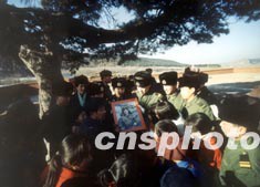 三月初,遼寧省撫順市解放軍官兵與當(dāng)?shù)氐膶W(xué)生,來到雷鋒照片中的大松樹下,緬懷雷鋒。作者:陳剛