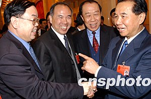 今天下午二點(diǎn)五十分左右,位于人民大會(huì)堂三樓的山東廳里傳出了熱烈的掌聲,人大代表們歡迎曾任山東省委書記的中共中央政治局常委、中紀(jì)委書記吳官正到山東團(tuán)參加政府工作報(bào)告的討論。