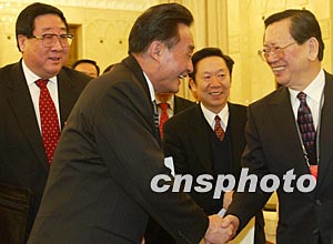 在香港代表團(tuán),吳邦國在認(rèn)真聽取代表發(fā)言后說,香港回歸祖國后,經(jīng)濟(jì)社會(huì)穩(wěn)定!耙粐鴥芍啤狈结樖钦_的,具有強(qiáng)大的生命力。我們將繼續(xù)堅(jiān)定不移地實(shí)行這一方針,嚴(yán)格按照基本法辦事,全力支持香港特別行政區(qū)行政長官和政府的工作,廣泛團(tuán)結(jié)香港各界人士,積極促進(jìn)內(nèi)地與香港在經(jīng)貿(mào)、教育、科技、文化等領(lǐng)域的交流與合作,共同維護(hù)和促進(jìn)香港的繁榮、穩(wěn)定和發(fā)展。