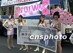 國際婦女節(jié)之際,日本眾多的女性參加了民間團體在東京舉行的反戰(zhàn)游行,反對美國準備對伊拉克發(fā)動戰(zhàn)爭。圖為別樣的反戰(zhàn)示威。作者:陶光雄