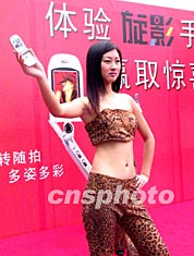 圖:廣州春季商戰(zhàn)開(kāi)始 模特兒造勢(shì)展示手機(jī)