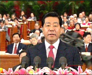 中新社3月14日電人民大會堂現(xiàn)場報道:全國政協(xié)十屆一次會議今天上午九時在人民大會堂舉行閉幕會。