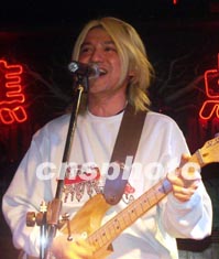 曾經(jīng)風靡一時的香港Beyond樂隊,15日晚首次在中國的西部蘭州焦點俱樂部登臺獻藝。圖為香港Beyond樂隊的前成員葉世榮在舞臺上激情高歌。作者:劉呈軍