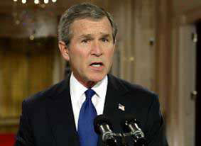 我們面臨的危險(xiǎn)是清楚不過的:在伊拉克的幫助下,恐怖分子可以利用生化武器,甚至某一天可能獲取核武器,并利用這種武器實(shí)施他們既定的襲擊計(jì)劃,將我們國家或其他任何國家上萬人甚至十幾萬無辜百姓殺死。美國和其他國家所做的一切不應(yīng)該得到這種襲擊,也不會(huì)引起這種威脅,但我們將盡一切努力來挫敗這種襲擊陰謀。我們不會(huì)沿著悲劇的道路走下去,我們將朝著安全的方向走下去。