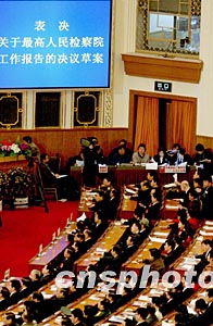 圖:代表表決高檢工作報告等決議草案