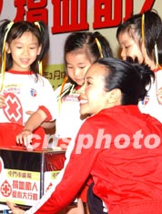 香港歌星莫文蔚在三月十八日香港屯門市中心廣場舉行的“捐血助人愛心大行動”上,擔(dān)任“愛心捐血之星”。中新社傳真 錢興強 攝