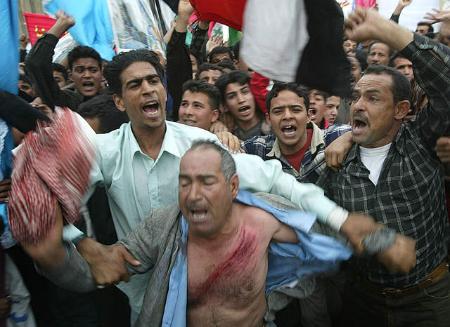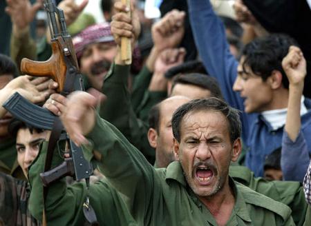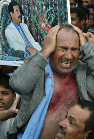 中新網(wǎng)3月19日電 當(dāng)?shù)貢r間3月18日,巴格達(dá)街頭爆發(fā)了大規(guī)模的抗議美軍入侵伊拉克的集會。由于薩達(dá)姆拒絕了美國的最后通牒,戰(zhàn)爭一觸即發(fā)。(春風(fēng))
