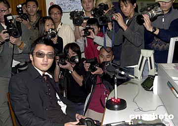 中新網3月19日電 香港歌星謝霆鋒3月18日抱病接受香港電臺節(jié)目"娛樂滿天星"訪問,吸引大批記者在直播室采訪拍照。