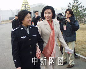 上午十時(shí)左右,身著米色套裙、白色皮鞋的滕春燕從位于北京大興的一所監(jiān)獄中走出來的時(shí)侯,與緊隨其后的兩位女警員相擁告別。面對早已等候在大門外的十多位中外記者,滕春燕興奮地說:“我現(xiàn)在的心情非常好!睘榻优畠撼霆z,滕春燕的父親滕玉本專程自外地來到北京。