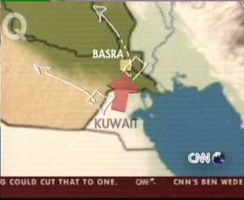 第3師出發(fā)后不久就與伊軍交上了火,據(jù)前衛(wèi)部隊發(fā)回的無線電,他們是與三輛伊軍裝甲運兵車遭遇的,經(jīng)過短短幾分鐘的混戰(zhàn),他們?nèi)珰灹诉@股伊軍。第3步兵師推進的速度異常之快,從夜里到天亮短短數(shù)小時,他們就已經(jīng)深入伊境內(nèi)150公里,平均以每小時30英里的速度推進。第5步兵師一名指揮官向記者透露說,他們師和兄弟部隊的任務(wù)就是在最短時間內(nèi)奪取兩河流域的戰(zhàn)略要地,隨后對巴格達實施合圍。