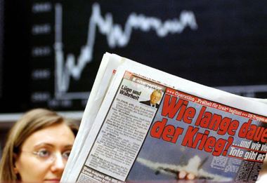 投資者一直在電視機(jī)前觀看伊拉克遭到大規(guī)?找u的畫面,在空襲中許多伊拉克領(lǐng)導(dǎo)人的住所被炸毀,其中包括薩達(dá)姆的一所官邸。這使投資者對戰(zhàn)爭將很快結(jié)束并會(huì)取得勝利的信心增大。