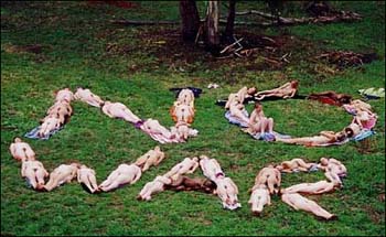 中新網(wǎng)3月27日電 據(jù)國際在線報道,當(dāng)?shù)貢r間3月25日,在澳大利亞亞塔斯馬尼亞島東南岸港口城市霍巴特。35名婦女全裸在曠野擺出“NO WAR(不要戰(zhàn)爭)”的字樣反對澳大利亞政府支持美英聯(lián)軍對伊發(fā)動戰(zhàn)爭。