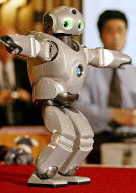 27日,日本SONY公司在東京展示了新研制的“SDR-4X II”型機(jī)器人,這種型號的機(jī)器人會跳舞,且能夠與人通話、通過傳感器越過障礙物行走。“SDR-4X II”型機(jī)器人將在4月3日的橫濱2003機(jī)器人展上亮相。