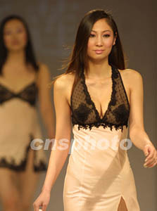 在北京舉行的2003年中國(guó)國(guó)際服裝服飾博覽會(huì)上,歐洲經(jīng)典內(nèi)衣28日晚進(jìn)行了展示。作者:趙振清