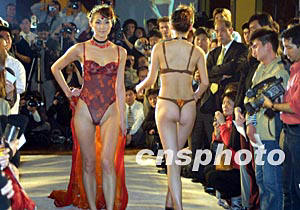 一個(gè)以?xún)?nèi)衣為主題的時(shí)尚派對(duì)三十一日晚在上海和平飯店舉行,所有參加派對(duì)的人都與時(shí)尚內(nèi)衣來(lái)了個(gè)“親密接觸”。作者:湯彥俊
