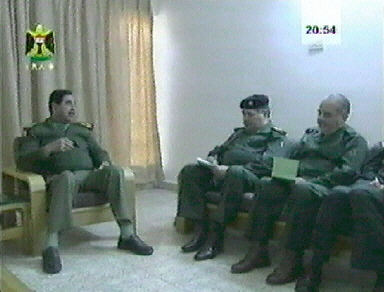 就在美英聯(lián)軍逼近巴格達之際,伊拉克電視臺3日晚播放了薩達姆主持一個會議的畫面。薩達姆身穿軍裝,顯得平靜而有條不紊。