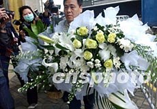 四月七日在香港殯儀館前,香港藝員譚詠麟為悼念張國榮逝世送來花籃“張國榮先生千古,永遠(yuǎn)懷念你”。 錢興強(qiáng) 攝