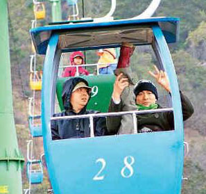 “華仔”笑道:“開始見到那些乘客都伏在吊車的欄桿,覺得好奇怪,何以不看風(fēng)景?到自己坐上吊車后,才知道原來上山不時會遇大風(fēng),沙塵滾滾,滿面滿口都是沙,不可以不伏低!”