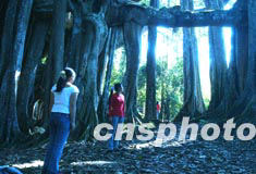 中國云南與緬甸交界的德宏州銅壁關(guān)自然保護(hù)區(qū)中,生長著一棵五百多年樹齡的榕樹王。它的老干新莖形成214根森林般的環(huán)境,至今生機(jī)勃勃。作者:賈國榮