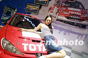 四月舉行的第十屆上海國(guó)際汽車工業(yè)展覽會(huì)上,一輛新款標(biāo)致賽車在靚麗少女的“陪伴”下閃亮登場(chǎng)。作者:湯彥俊