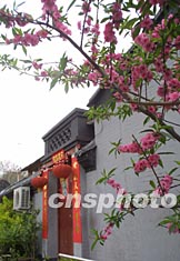 圖:盛開的桃花裝扮京城古老而清靜四合院