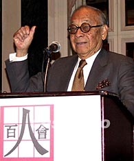 八十六歲高齡并已很少在公開場合露面的美國著名華裔建筑師貝聿銘,四月二十四日在紐約出席美國百人會第十二屆年會,并作為百人會創(chuàng)始人在開幕式上發(fā)表演講。作者:趙海燕