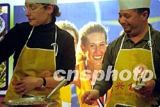 伊拉克人沙法(右)和他的德國(guó)朋友四月末在上海一家江浙菜餐廳“表演”廚藝。這家餐廳為了宣傳菜品,每周特請(qǐng)?jiān)谏虾5耐鈬?guó)朋友隨意炒作中國(guó)菜,并從中評(píng)選“等級(jí)廚師”,而沙法等外國(guó)人也從中獲得新鮮樂(lè)趣。作者:劉殊瑾