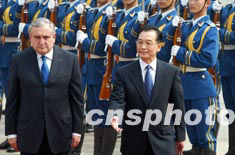 中新社北京四月二十五日電(記者姜知然)中國國務院總理溫家寶二十五日在人民大會堂與法國總理拉法蘭舉行會談時表示,拉法蘭總理此次訪華意義重大,對中法關系的深入發(fā)展將起到積極促進作用。