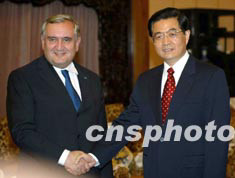 胡錦濤會(huì)見(jiàn)拉法蘭 強(qiáng)調(diào)加強(qiáng)與歐盟對(duì)話(huà)經(jīng)貿(mào)交流