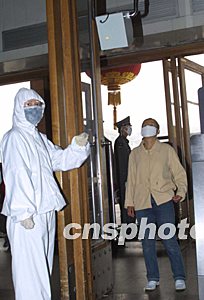 二十六日十七點(diǎn),首都機(jī)場停機(jī)坪入口處,北京市交通委的工作人員正在等待一批從深圳運(yùn)來的門式熱敏儀。當(dāng)?shù)谝慌吲_熱敏儀終于運(yùn)到時,立刻就被調(diào)走七臺,余下的十臺運(yùn)到趙公口、六里橋、東直門、八王墳等十個長途客運(yùn)站,連夜安裝。其他長途客運(yùn)站也將盡快配置。