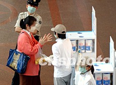 香港一些購物商場(chǎng)為預(yù)防“非典型病毒”傳播,紛紛設(shè)立衛(wèi)生站方便市民清潔,并宣傳防止SARS傳播方法。洪少葵 攝