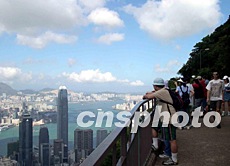 受到非典型肺炎影響下,香港市民不敢去人流擠迫的地方,山頂就成為呼吸新鮮空氣的好地方,成為近期郊游熱點(diǎn)。譚達(dá)明 攝