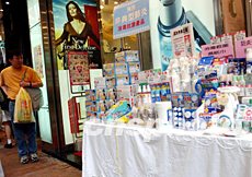 香港“非典”疫情穩(wěn)中放緩,市民不敢松懈,售賣(mài)預(yù)防病毒傳染的用品繼續(xù)受落。洪少葵 攝