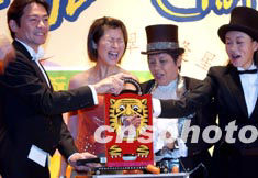 香港藝員楊思琦參與演出的《譴綣仙凡間》電視劇首周收視破紀(jì)錄,5月16日楊思琦表演魔術(shù)慶祝收視報(bào)捷。中新社傳真 洪少葵 攝