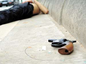 中新網(wǎng)5月18日電 昨日凌晨5時(shí),駕駛著一輛黑色皇冠轎車,四名亡命歹徒攜帶兩把手槍和三把馬刀,從深圳布吉鎮(zhèn)出發(fā),經(jīng)平湖至光明農(nóng)場(chǎng)一路瘋狂行搶。昨日凌晨7時(shí)30分,在寶安區(qū)觀光公路育新學(xué)校路段,正在實(shí)施搶劫的歹徒,遭遇寶安便衣民警伏擊,經(jīng)過(guò)約5公里的飛車追逐和激烈的槍?xiě)?zhàn)后,一名歹徒被當(dāng)場(chǎng)擊斃,3名歹徒被警方抓獲———