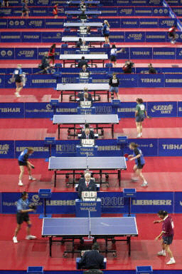 浪漫的法國人沒有在開幕式上展現(xiàn)他們的藝術(shù)細(xì)胞和想象力,剛承載了一天比賽的球臺依然端放在場地中央,成為最切合世乒賽主題的“道具”,以播音員播報(bào)和彩色大屏幕閃現(xiàn)參賽國名及國旗的方式省略了運(yùn)動員入場儀式,使開幕式變得簡短而實(shí)在。但當(dāng)法國乒協(xié)主席韋爾唐在率先致辭后高呼:“法國萬歲!世乒賽萬歲!乒乓球萬歲!”時,沒有人不相信,充滿激情的法國人也將使這次大賽成為一次充滿激情的賽事。