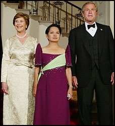阿羅約目前正在美國進行國事訪問,她是布什上任以來第一位對美進行國事訪問的亞洲國家領(lǐng)導(dǎo)人。
