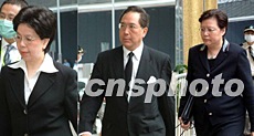 香港立法會(huì)主席范徐麗泰[右]、教育統(tǒng)籌局長(zhǎng)李國(guó)章【中】、衛(wèi)生署署長(zhǎng)陳馮富珍、5月22日前往香港殯儀館吊唁為救治非典型肺炎而殉職的屯門(mén)醫(yī)院女醫(yī)生謝婉雯。洪少葵 攝