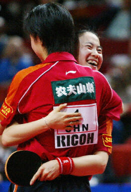 王楠/張怡寧獲女雙冠軍后親切擁抱
