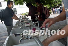 部分復(fù)課的北京中學(xué)生每日進(jìn)校后,主動用藥皂洗手。面對即將全面復(fù)課的學(xué)生,北京各學(xué)校紛紛采取增建洗手池、加強(qiáng)消毒等措施預(yù)防“非典”。中新社記者:鄭萍萍