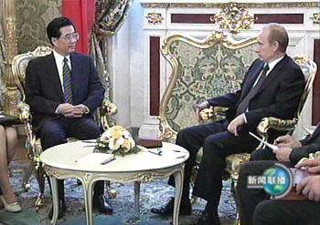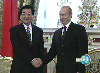 今天是胡錦濤主席訪俄的第二天。當(dāng)?shù)貢r(shí)間今天上午,胡錦濤主席向無(wú)名烈士墓敬獻(xiàn)了花圈,并參觀了俯首山衛(wèi)國(guó)戰(zhàn)爭(zhēng)博物館。中午,普京總統(tǒng)在克里姆林宮為胡錦濤主席舉行了歡迎儀式并進(jìn)行小、大范圍會(huì)談。會(huì)談結(jié)束后,兩國(guó)元首簽署了中俄聯(lián)合聲明等三個(gè)文件。