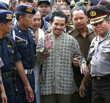 今天出庭作供的四人是穆赫拉斯、薩穆德拉、伊姆龍和穆巴拉克。當(dāng)局特別安排把四人從巴厘島送到首都雅加達(dá),出庭作供。