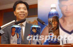 百事可樂(lè)公司29日在上海首度發(fā)布了一則由姚明與周杰倫合作拍攝的電視廣告片,這也是姚明簽約百事后的首個(gè)“動(dòng)作”。可惜姚明參加國(guó)家籃球隊(duì)集訓(xùn),周杰倫在法國(guó)工作,兩名主角均未蒞臨發(fā)布會(huì)現(xiàn)場(chǎng)。圖為百事公司人士介紹這部將于六月在內(nèi)地多個(gè)電視臺(tái)同步推出的廣告片。作者:艾特