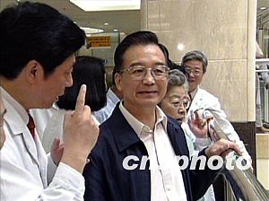 據(jù)中國中央電視臺報道,今天上午9時,溫家寶和中共中央政治局委員、國務(wù)院副總理吳儀,在中共中央政治局委員、北京市委書記劉淇,北京市代市長王岐山陪同下,來到北京兒童醫(yī)院新門診大樓。這里擁有國際一流的就診環(huán)境和診療手段,日門診量可滿足近萬名患兒就診。