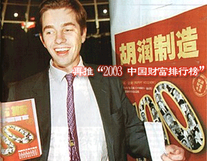胡潤(rùn)(Rrpert Hoogewerf),英國(guó)人,今年33歲,曾任美國(guó)著名的財(cái)富雜志《福布斯》(Forbes)的中國(guó)地區(qū)首席調(diào)研員。