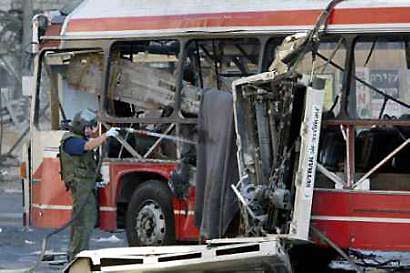 就在爆炸現(xiàn)場(chǎng)附近一家鞋店當(dāng)服務(wù)員的哈吉德·斯泰恩渾身顫抖著哭著告訴記者說(shuō):“爆炸發(fā)生時(shí),我剛剛從14路公共汽車上下來(lái)。我一下子就被炸蒙了,根本不知道躲往哪躲,藏往哪藏!我簡(jiǎn)直不敢相信自己會(huì)有這么幸運(yùn)!”劇烈的爆炸炸飛了這輛紅白相間的14路公共汽車的所有車窗,車的左側(cè)被炸出一個(gè)大洞,車頂被整個(gè)兒掀開(kāi)。